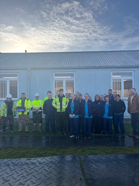 The team were delighted to hear from Construction Director Mark Wilson that their application had been successful. Mark visited the site and worked with Frances to plan an outdoor seating area for community staff based at Falkirk.